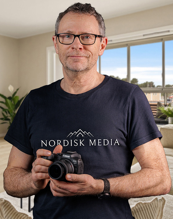 Jeg liker å yte god service når jeg er ute hos mine kunder, og jeg forlater heller ikke en bolig jeg fotograferer før jeg er 100 % fornøyd selv med bildene som er tatt!"